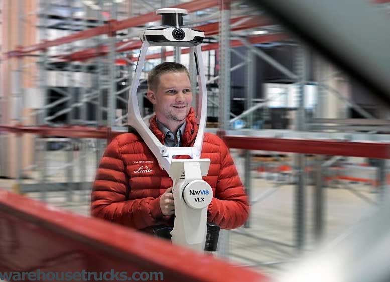 Linde is demonstrating the use of cameras and AI software in a semi-automated warehouse. Scanning cameras observe the warehouse in…